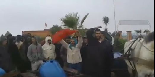 تحت سماء ممطرة ساكنة بعض دواوير ايت حمو بالرحامنة تحتج بسبب العطش+ فيديو