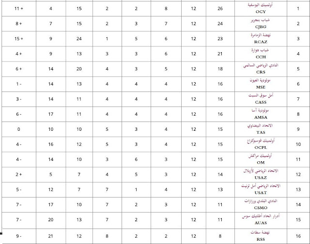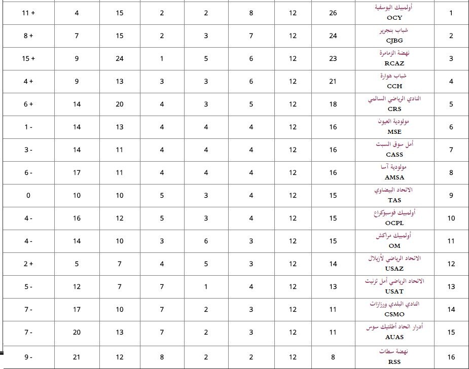 وفيمايلي نتائج الدورة 12 مع الترتيب