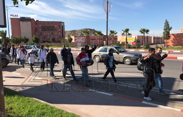 وحسب ما عاينته وسائل الاعلام المحلية فإن اطر البرنامج الحكومي وصلوا في هذه الاثناء الى مدارة بلعريف بالقرب من الملعب الكبير لمدينة مراكش، في الطريق صوب مدينة الدار البيضاء .