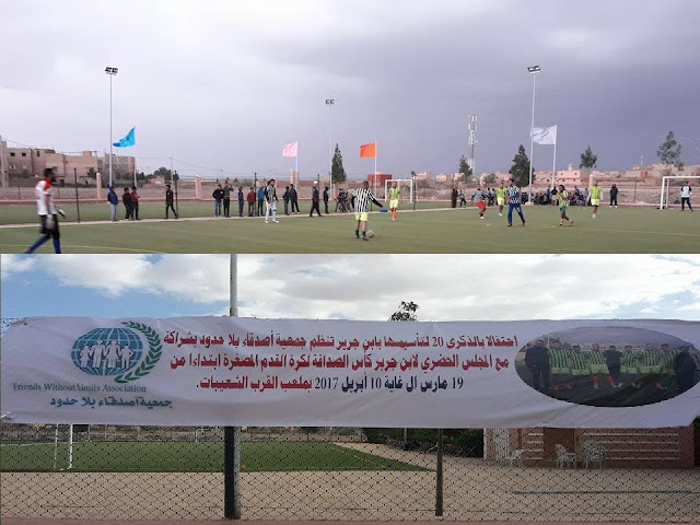 احتفالا بالذكرى الـ 20 لتأسيسها أعطت جمعية اصدقاء بلاحدود ببنجرير انطلاقة دوري ”الصداقة لكرة القدم ” المنظم خلال شهري مارس وأبريل بمشاركة 8 أندية من الفرق المحلية بمدينة بنجرير.
