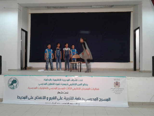 وبدوره أشاد مولاي أحمد الهيتاك رئيس الفرع الإقليمي لجمعية التعاون المدرسي بالفرق المشاركة مؤكدا أن المهرجان الاقليمي للمسرح المدرسي يعتبر فرصة للتلاقح و اللقاء و المتعة و الفرجة و التعبير لتكوين مواطنة و مواطن الغد.