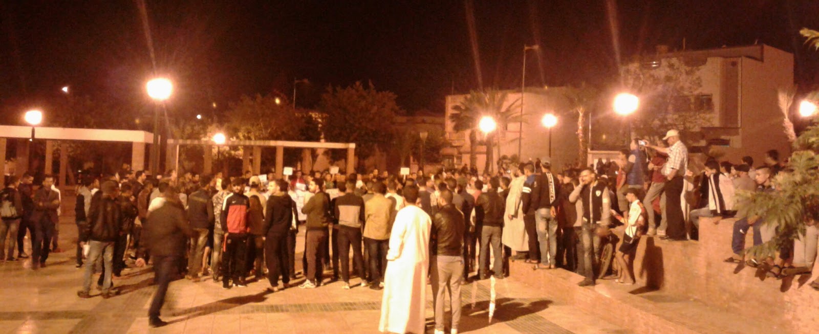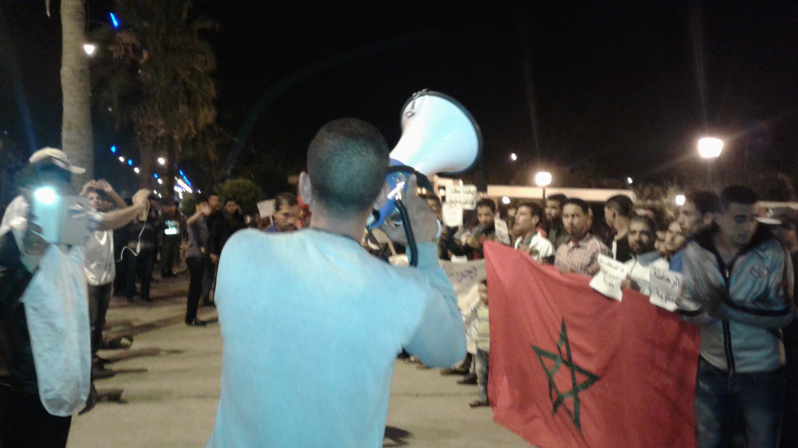 وخلال الوقفة التي نظمت بساحة مسجد الراضي تحت أنظار مختلف تلاوين الأجهزة الأمنية رفع المحتجون العلم الوطني والعديد من الشعارات المطالبة بالحق في العدالة الاجتماعية والشغل واقتسام الثروة.
