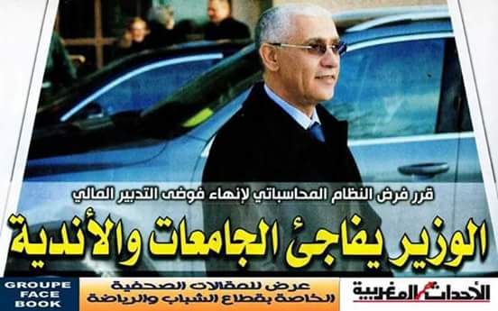 كشف مصدر مطلع أن رشيد الطالبي العلمي، وزير الشباب والرياضة، يستعد لإصدار قرار وزاري يلزم جميع الجامعات والجمعيات والأندية الرياضية بالمغرب بالالتزام بالنظام المحاسباتي الجديد لأندية البطولة الاحترافية لكرة القدم، الذي تمت المصادقة عليه مؤخرا من طرف المجلس الوطني للمحاسبة، وهو النظام الذي يتعلق بافتحاص مالية الأندية الوطنية، والتدقيق في مصاريفها وعائداتها، وتدبيرها المالي. وأكد المصدر ذاته أن العديد من الجامعات التي اعتادت على «الفوضى المالية» ستتفاجأ بالقرار الجديد، لكونها كانت تعتقد أن النظام المحاسباتي خاص فقط بأندية البطولة الاحترافية ولن يعمم على غيرها.