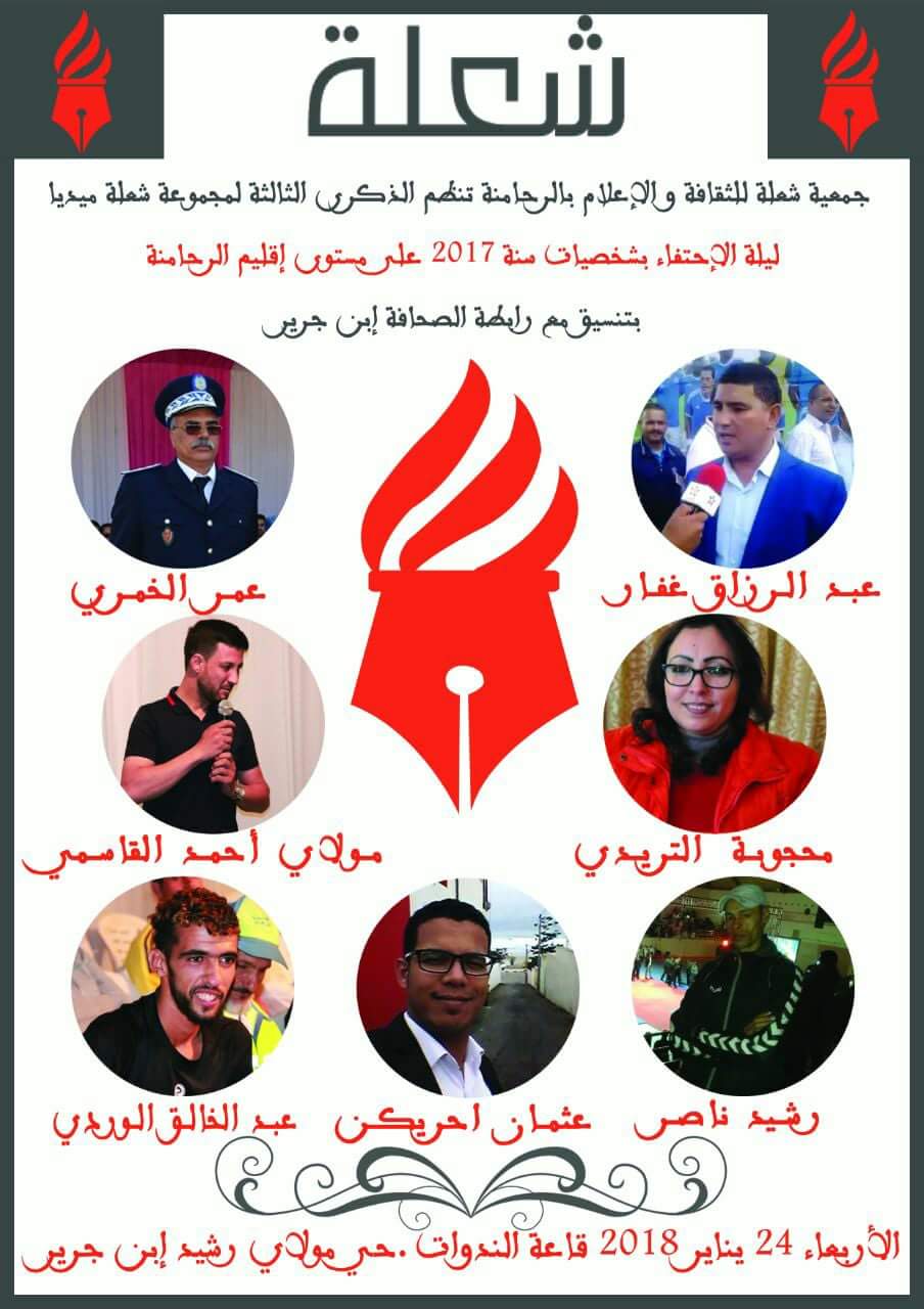 بتنسيق مع رابطة بيت الصحافة ببنجرير “شعلة ميديا” تنظم حفل تكريم شخصيات 2017 بالرحامنة