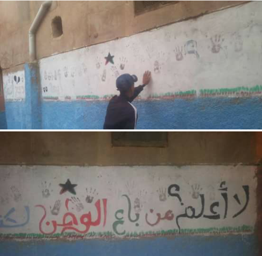 استغرب ناشطون فيسبوكيون من بنجرير اقدام جهات وصفوها بالمسؤولة على تبييض جدارية بالحي الجديد كتب عليها بيت شعري للشاعر الفلسطيني الراحل محمود درويش .(لَا أعْلَمُ مَنْ بَاعَ الوَطَنْ وَلَكِنَّنِي رَأيْتُ مَنْ دَفَعَ الثَمَنْ).