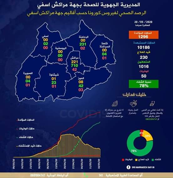 مبروك للرحامنة : أحسن خبر منذ ظهور كورونا بالإقليم بواسطة هيئة التحرير في 20 مايو, 2020 0 شارك FacebookTwitterWhatsAppالبريد الإلكترونيLinkedinTelegramطباعة احصل على تحديثات في الوقت الفعلي مباشرة على جهازك ، اشترك الآن. الاشتراك فور تنمية. كشفت المديرية الجهوية للصحة بجهة مراكش آسفي في تقريرها الصادر في العاشرة صباحا من اليوم الأربعاء 20 ماي عن شفاء آخر المصابين بإقليم الرحامنة. وبهذا وبعد أسابيع عديدة من الضغط النفسي بسبب الرقم الكبير للمصابين الذي وصل لعدد 231 توفي منهم رجل وإمرأة استبشر سكان هذه المنطقة بعودتهم لحالة الصفر. هذا وأهابت الجهة الصحية بالمواطنين اتخاذ كافة الاجراءات الوقائية. 0 شارك FacebookTwitterWhatsAppالبريد الإلكترونيLinkedinTelegramطباعة