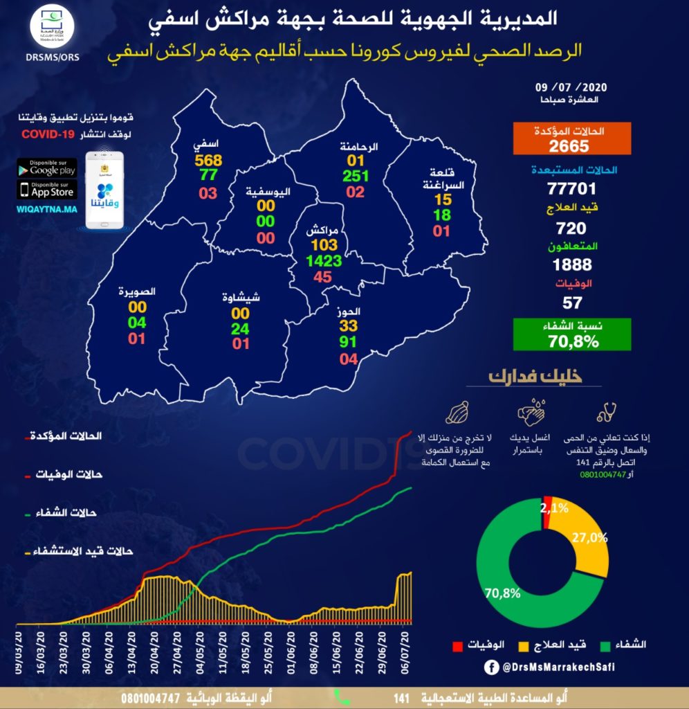 وأصبح اقليمي الصويرة وشيشاوة خاليين من الوباء بعد تماثل حالات الإصابة للشفاء، فيما ظل إقليم اليوسفية خاليا من أية إصابة منذ ظهور الوباء بالجهة.