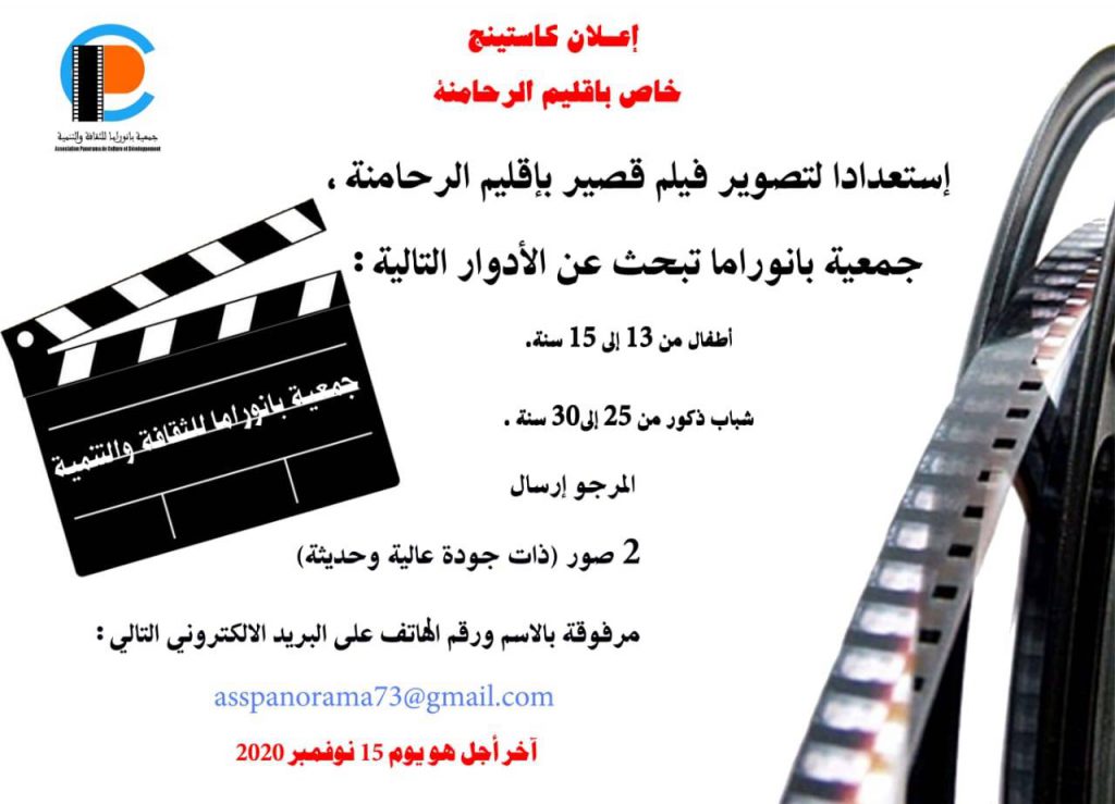 جمعية بانوراما تبحث عن ممثلين استعدادا لتصوير فيلم قصير بواسطة هيئة التحرير في 9 نوفمبر, 2020 0 شارك FacebookTwitterWhatsAppالبريد الإلكترونيLinkedinTelegramطباعة احصل على تحديثات في الوقت الفعلي مباشرة على جهازك ، اشترك الآن. الاشتراك 0 شارك FacebookTwitterWhatsAppالبريد الإلكترونيLinkedinTelegramطباعة