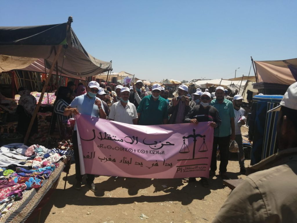 حضي حزب الاستقلال بالرحامنة بالترحيب من قبل أبناء منطقتي سيدي بوعثمان وبوشان خلال زيارة لوكيل لائحة الميزان للتشريعيات القادمة  عبد الحليم المنصوري في إطار الحملة الانتخابية للغرف المهنية المرتقبة يوم 6 غشت الجاري.