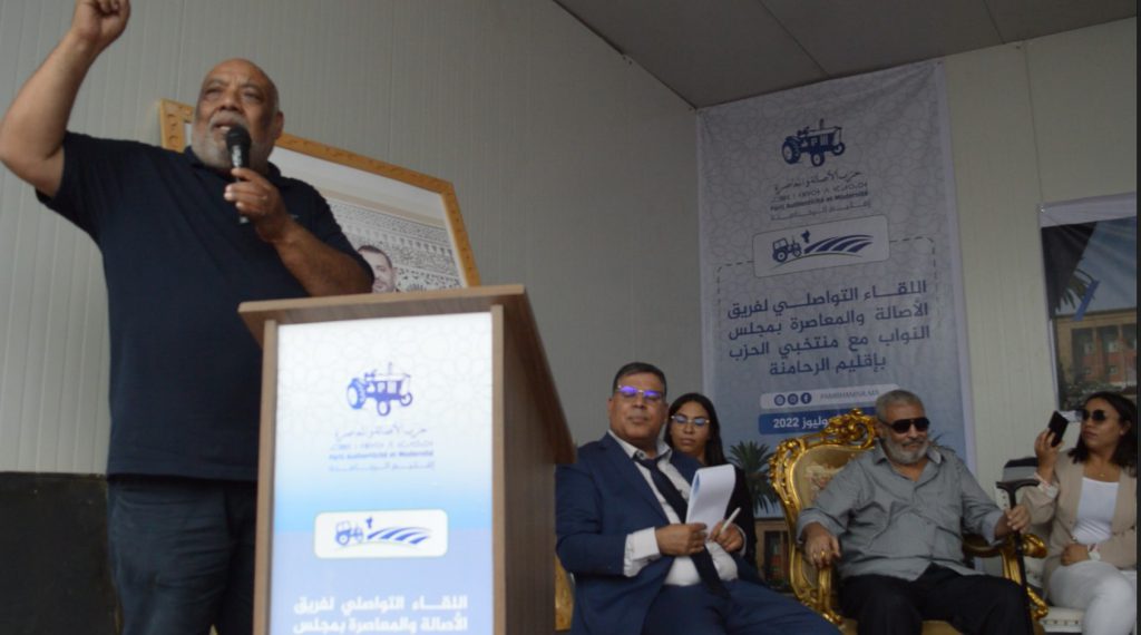 وفي ختام هذا العرس الحزب تم تكريم أحد قيدومي مناضلي حزب البام بالرحامنة بنعبيدة الذي قدمت في حقه شهادات تحيي مساره النضالي وغيرته على منطقته وحزبه , وسلمت له بالمناسبة هدية تذكارية عربون تقدير لما قدمه للحزب من تضحيات.