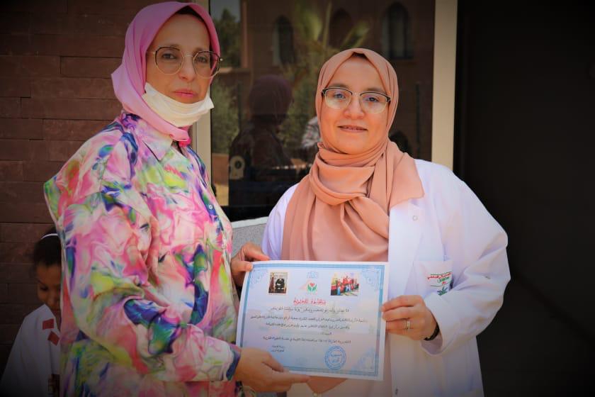 و اختتمت الزيارة التي قادتها محجوبة اورير رئيسة جمعية أم المؤمنين عائشة للتنمية بالرحامنة بتكريم الأطر الطبية وتسليمها شواهد تقديرية عرفانا لمجهوداتها الجبارة نظير خدمتهم للأطفال المرضى بالسرطان.