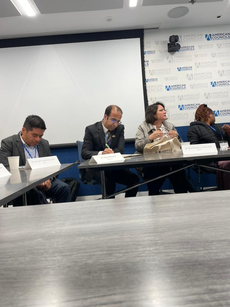 اللقاء الأول بالمجلس الأمريكي للتعليم الدولي و كان في استضافة الوفد المشارك ببرنامج الزائر الدولي للقيادة من طرف السيد Akram Elias الرئيس المدير العام Capital Communications Group و تمحو اللقاء حول موضوع ” النظام الفدرالي للحكومة الأمريكيةو طبيعة الاتمركزه”