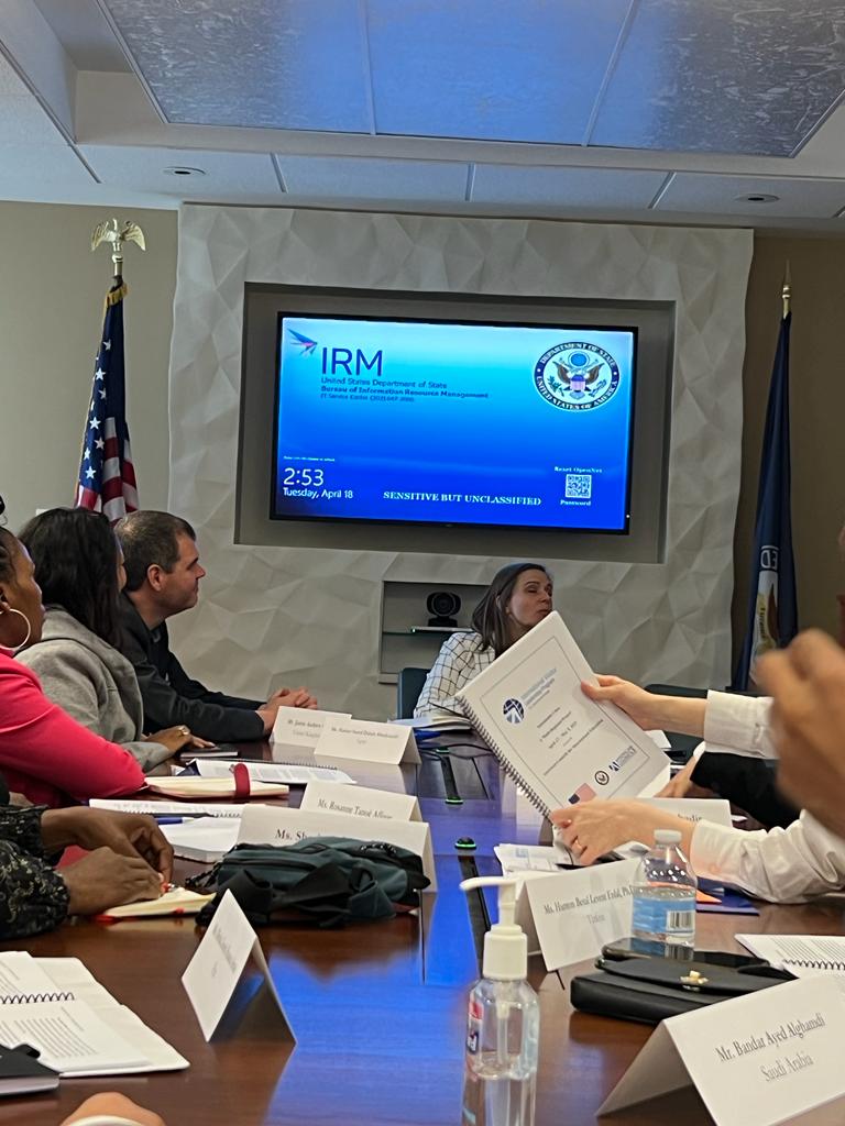 اما اللقاء الثاني تمت برمجته بوزارة الخارجية الامريكية حول موضوع “عمل وزارة الخارجية الأمريكية على موارد الطاقة والبيئة والعلوم والتكنولوجيا” حيث التق الوفد بكل من السيدة Sarah Weber كبيرة مستشاري مساعد السكرتير للشؤون الاقتصادية والتجارية الأمريكية و اللتي تمركزت مداخلتها على دور مكتب الشؤون الاقتصادية و التجارية في تعزيز الأمن الاقتصادي والازدهار في الداخل والخارج حيث يشارك مع الحكومات الأجنبية والشركات لتعزيز المصالح الاقتصادية الأمريكية ، بما في ذلك تطور التجارة ، وتشجيع الاستثمار ، ودعم ريادة الأعمال والابتكار.