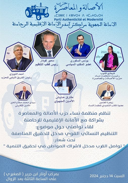 سيُعقد اللقاء يوم السبت 14 ديسمبر 2024 بفضاء أوتار ، حيث يُتوقع حضور نخبة من الفاعلين السياسيين، والمهتمين بقضايا المرأة، إضافة إلى مشاركة نسائية واسعة.